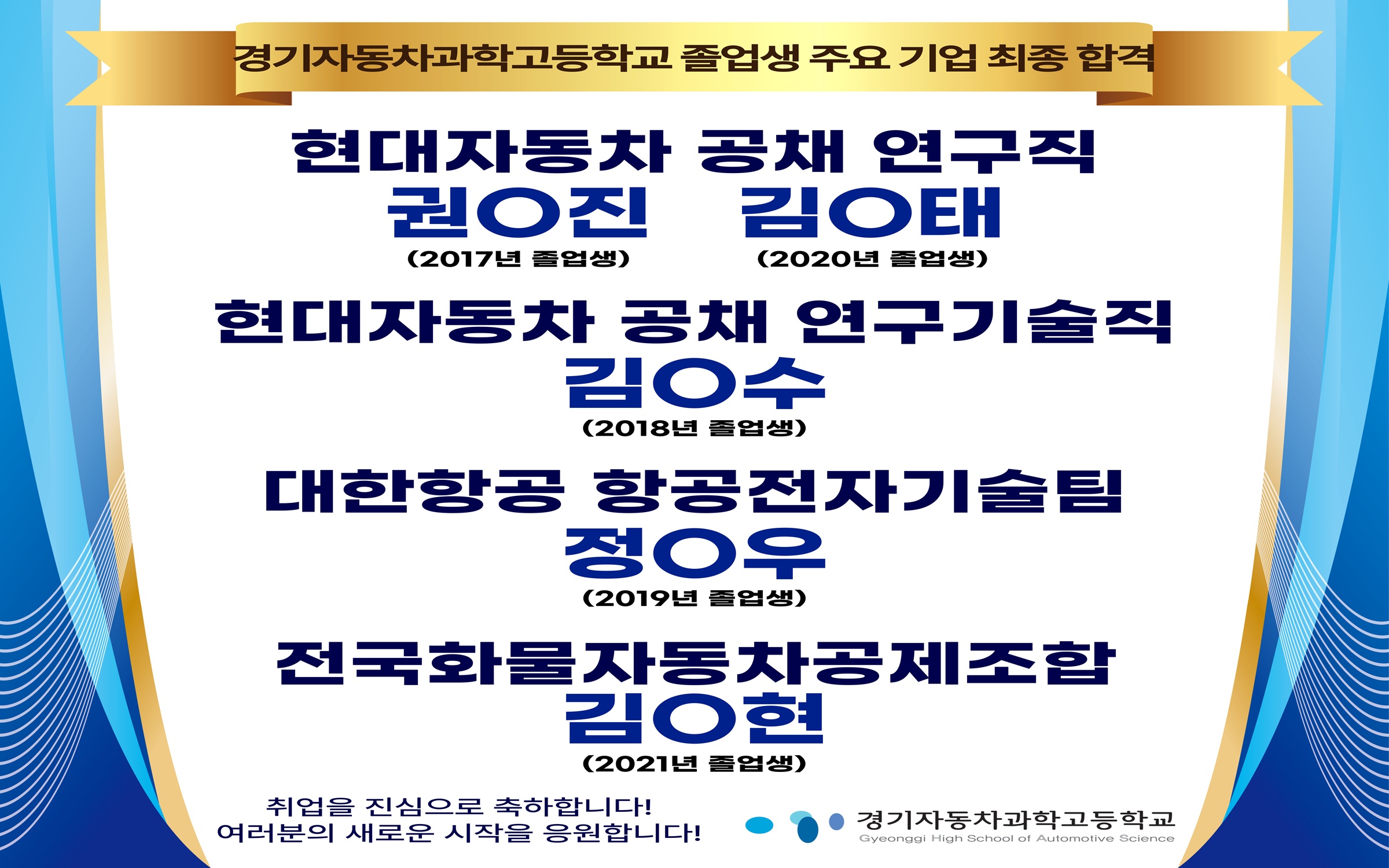 졸업생 현대자동차, 대한항공 등 주요 기업 최종 합격